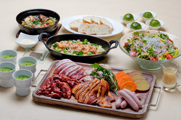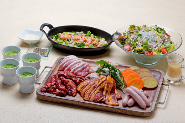 - 前菜盛り合わせ7種、お肉チョレギサラダ、ガーリックライスをリーズナブルにお愉しみいただけます。