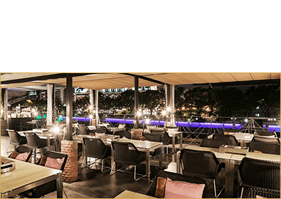 フロアは全席川面を望み、大阪の歴史的建造物「大阪市中央公会堂」も眺められるベストビュー。大阪の新しいランドマークからの眺めをお食事とともにゆっくりとお愉しみください。 B.B.Qとロケーションが大変ご好評のため冬季もB.B.Qラウンジとして営業しております。夏はビアガーデン、冬はお鍋と、年中お楽しみいただけます。