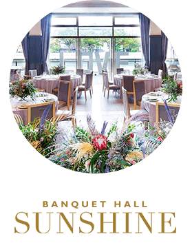 中之島リバーワンダーランド内にあるバンケットホール サンシャイン。ガラス張りの窓から、たっぷりふりそそぐ太陽の光。ここちよい風。心和む緑。アクセスの良い便利なロケーションは中之島 LOVE CENTRALだからこそ。